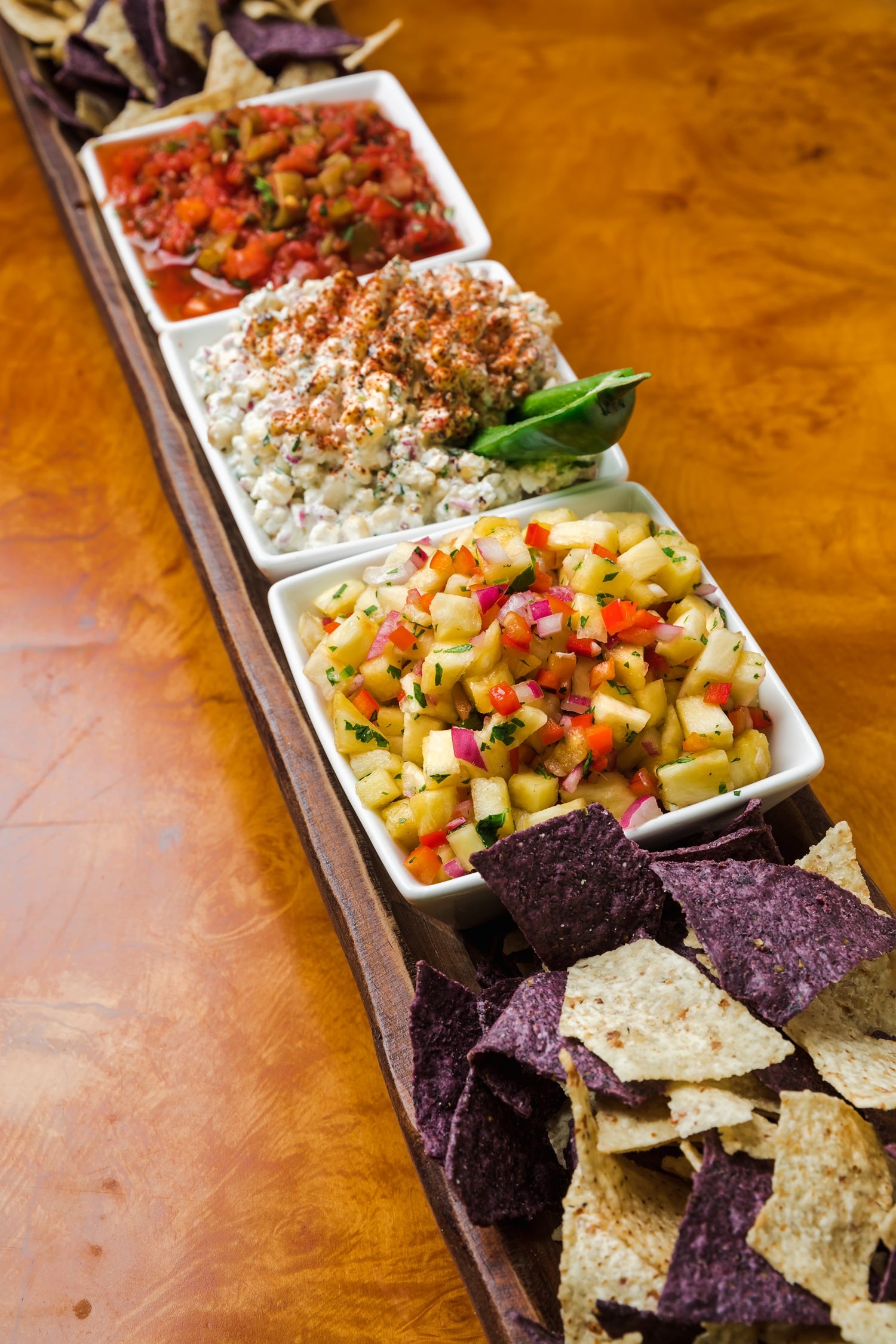 Serves 12-15 - Pico de Gallo, Pineapple Salsa, Elote Corn Dip & House Made Tortilla Chips